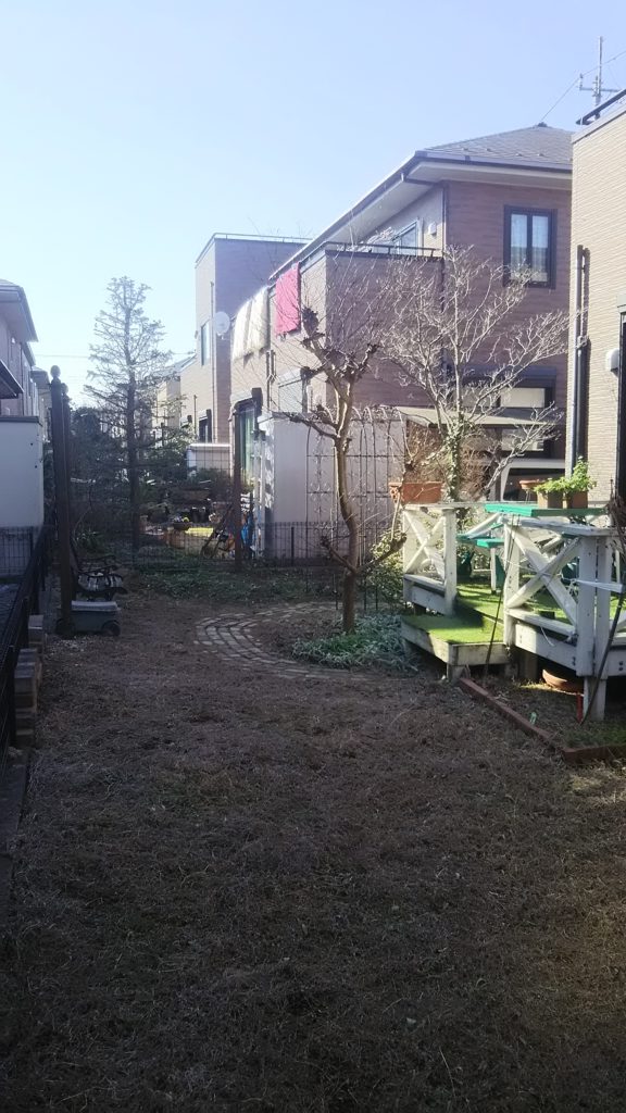 車庫と家の屋根にかぶっていたので伐採しました。